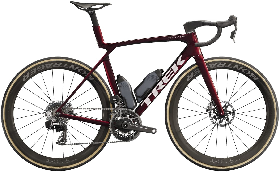 The Madone SLR 9 AXS Gen 8 is built for dominating the roads with equal parts light weight and aerodynamic speed. It's crafted from Trek's highest-level 900 Series OCLV Carbon that's not only insanely light, but delivers aerodynamic shapes for crushing descents and straightaways. Lightweight IsoFlow frame technology means that Madone doesn't sacrifice comfort for speed. This build comes ready to win with a top-level SRAM RED AXS drivetrain, carbon wheels, a Trek Aero RSL one-piece carbon bar/stem and RSL Aero Bottles and Cages for more drag reduction. You eat, sleep and breathe racing, and you want the best road race bike Trek have ever made. You're looking for a trifecta of aerodynamics, comfort and lightweight in a single bike. You're willing to splurge on things that matter, like the top carbon lay-up, best component spec and any detail that will give you the competitive edge on race day. An insanely light frame made of Trek's highest-level 900 Series OCLV Carbon with aero tubing, IsoFlow comfort technology and RSL Aero Bottles and Cages that save watts. SRAM's latest RED AXS E1 ultra-light drivetrain and power meter for training with data. A universal derailleur hanger so you can get a replacement from anywhere. Plus, it's topped off with Bontrager Aeolus RSL 51 tubeless carbon wheels and a Trek Aero RSL one-piece bar/stem. The Madone SLR 9 AXS Gen 8 is Trek's lightest, most aero, top-performing Madone that's ready to deliver superbike performance absolutely everywhere. It's crafted with a supremely light 900 Series OCLV Carbon frame for rocketing up climbs, aero tube shaping for slicing through windy descents and IsoFlow comfort tech to keep you feeling good through it all. It's spec'd with the top components and doesn't make any compromises.