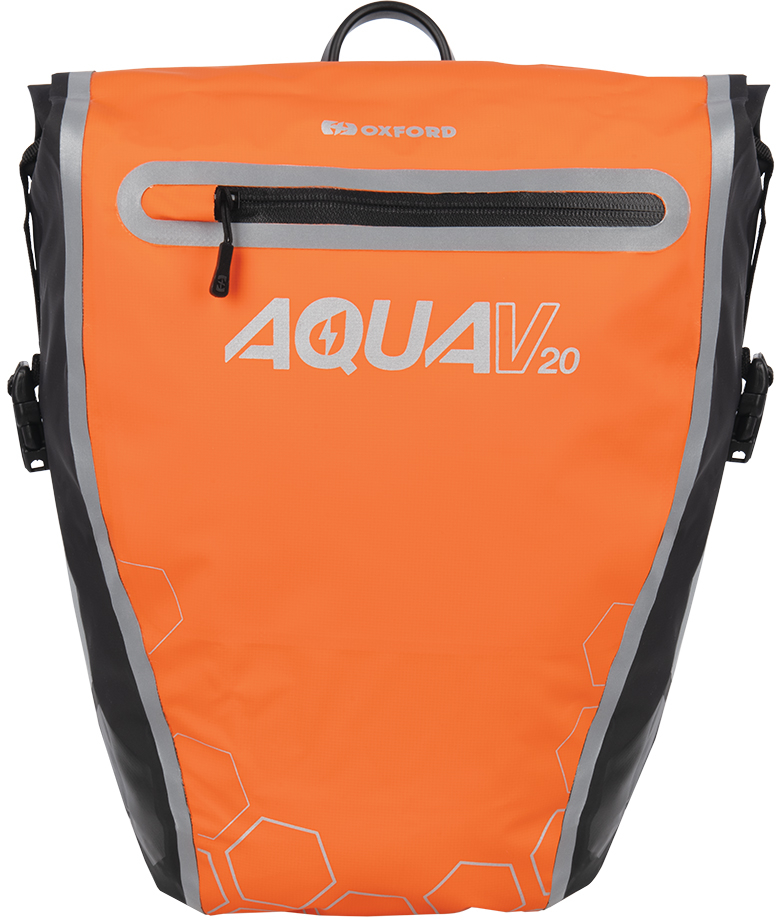 Stay prepared for any cycling adventure with Oxford's Aqua V 20 Single QR Pannier Bag. Made from robust PVC tarpaulin with waterproof seams, this bag guarantees your essentials will be kept safe and dry, regardless of the weather. Its quick-release fitting system allows the pannier to easily attach to your bike, greatly expanding your storage options. This bag offers an impressive 20 litre capacity and features a roll-top design with compression straps, making it the perfect versatile carrier for your journeys. Rain or shine, trust your belongings are secure with the waterproof roll-top closure.Be seen and stay safe with its 360-degree reflective detailing, enhancing your visibility in low light. Convenience is key, and the bag's carry handle ensures you can simply take your gear with you once you reach your destination. Key Features