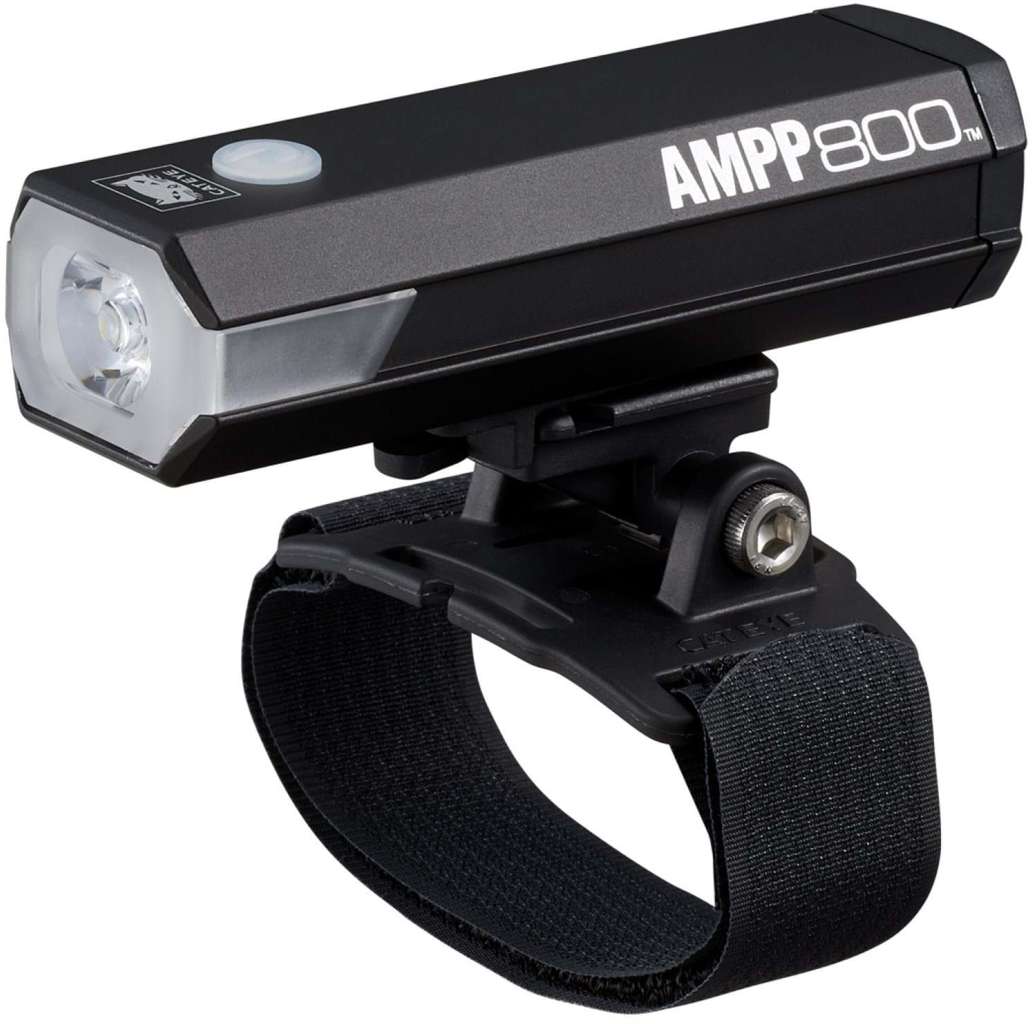 CatEye: The new AMPP 800 helmet mount light is an excellent addition to your night-time off-road adventures. With 3 very bright constant settings, it’s easy to customise to your riding environment. The AMPP 800 is a compact light with excellent side visibility for maximum spread of light. A true performer, in every sense of the word.FEATURES:800 Lumen maximum outputComes with helmet mount strap included in boxOpticube lens technology for supreme light distributionRobust 6063 aluminium body with enhanced scratch resistanceHelmet strap included220% larger side lens for a significantly wider beam and enhanced side visibilityPower button constant runtime indicator: Blue +50% / Yellow 50-30% / Red 30%-0%Double click to High mode, Single click returns to previous modeLight Mode MemoryCan be used as front bar mount light with H-34 bracket (Available separately)Recharge time: 3-7hrs, up to 40% faster than the Volt 800Battery: Li-Ion 3.7v 2500mAhWaterproof rating: IPX4Weight: 136g, 5% lower than the Volt 800MODE: OUTPUT, RUNTIMEHigh: 800 Lm, 1.5hrsMedium: 400 Lm, 2hrsLow: 200 Lm, 4hrsDaytime HyperConstant: 200 Lm + 800 Lm, 4hrsFlashing: 200 Lm, 30hrsTECHNOLOGIES:Helmet LightDesigned for helmet use.OptiCube™Our proprietary OptiCube™ lens technology maximizes brightness for greater visibility.Side VisibilityProvides visibility from the side to increase safety.FlexTight™The innovative and versatile FlexTight™ bracket by Cateye can be quickly and securely fastened to virtually any handlebar or stem. Fully re-usable, the FlexTight™ bracket mounts easily without tools and can be finely adjusted and tightened by hand enabling numerous possible computer placement configurations.USBUSB rechargeable products recharge the batteries from any USB port.Battery IndicatorIndicates a battery level.DaytimeCan be used in the daytime.All WeatherCan be used in rainy weather.