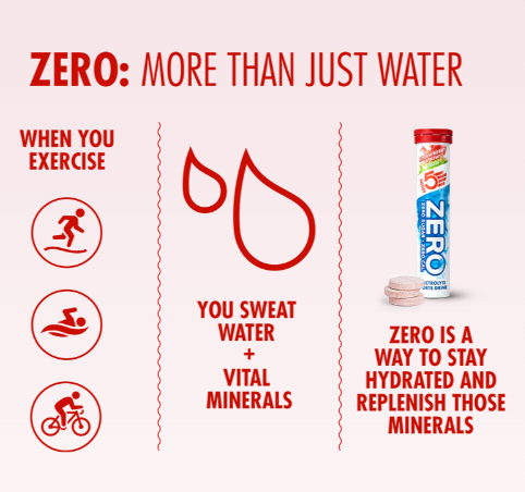 ZERO is designed to be taken BEFORE, DURING and AFTER exercise and in hot weather.
