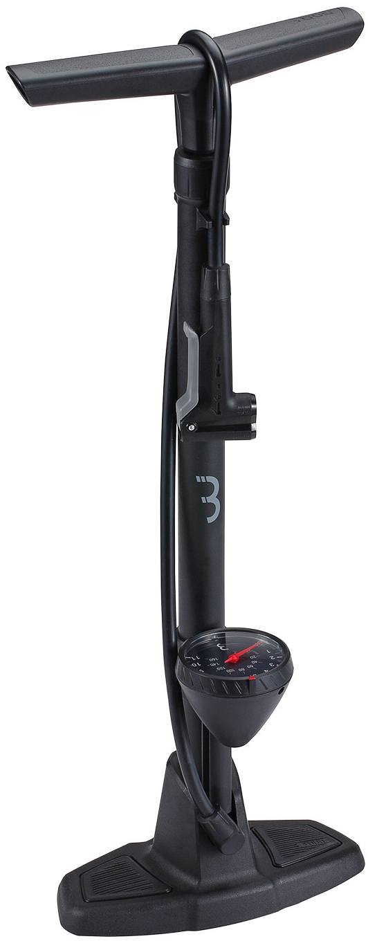 Lightweight floorpump with 70 cm high pressure rubber hose.
