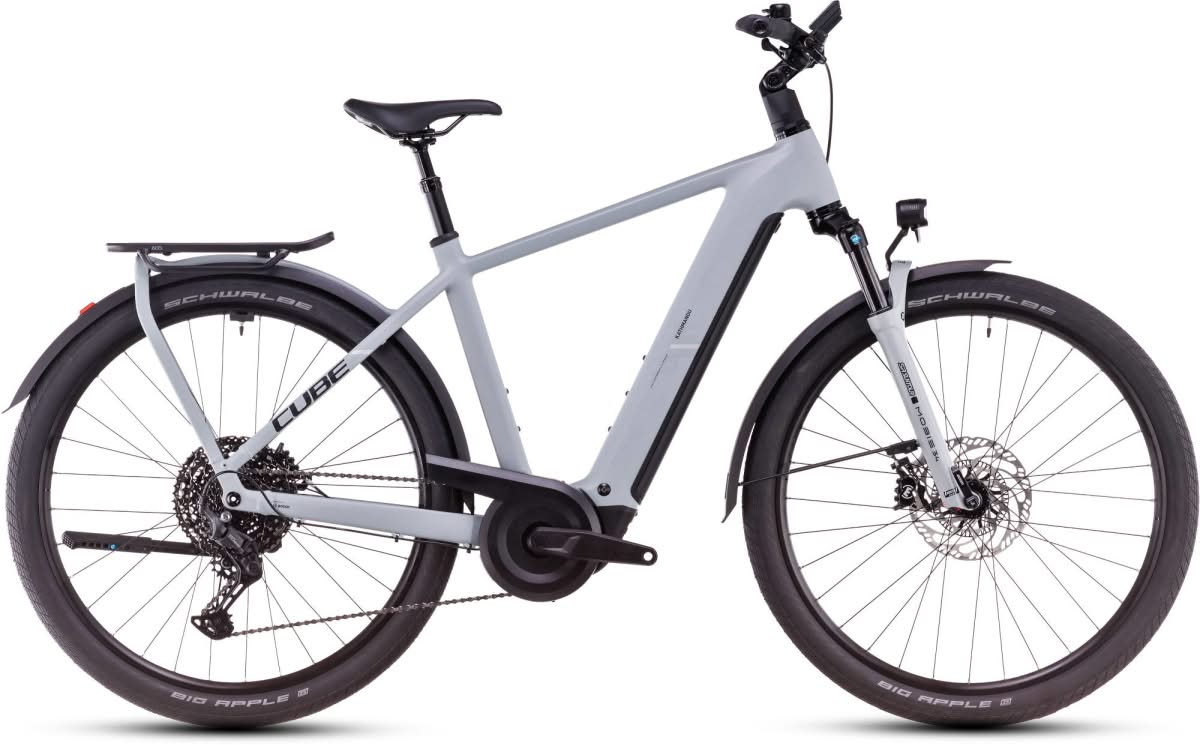 The Kathmandu Hybrid EX 800 from CUBE has got your back, wherever you take it. Its powerful Magura MT C ABS hydraulic disc brakes feature an ABS system to prevent the front wheel from losing grip, helping to keep you safe in all weathers and even under heavy braking. The Bosch CX drive has up to 85 Nm of torque in pedal assistance to dish out, backed up by the 800 Wh PowerTube battery and delivered to the rear wheel via Shimano's easy-to-use Cues 11-speed gears. There's a suspension seatpost, adjustable stem and a Suntour Mobie 34 fork to keep you comfortable. The Integrated Carrier 3.0 is adaptable and sturdy enough to take care of pretty much any load-carrying, whether it's for commuting or touring. And there's a full complement of accessories, so you can just concentrate on the ride.
