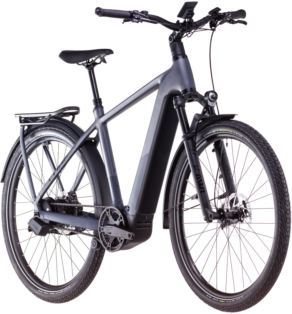 What if you could just jump on your bike and go. anywhere? With the Kathmandu Hybrid Comfort SLX 800 from CUBE, you can. Its fully automatic, belt-driven Enviolo hub gears work seamlessly with the Bosch CX motor and 800 Wh PowerTube battery to get you to your destination without fuss or fanfare, and with the minimum of effort. There's up to 85 Nm of pedal assistance on tap, and the gears and motor adjust according to riding conditions. All you need to do is pedal and go. A Fox 34 AWL fork, adjustable stem and dropper seatpost help make every journey a comfortable experience, and powerful Shimano XT hydraulic disc brakes ensure you can always slow and stop, whatever the weather. With a full complement of accessories and the versatility of the Integrated Carrier 3.0, all that's left is to decide where to ride.