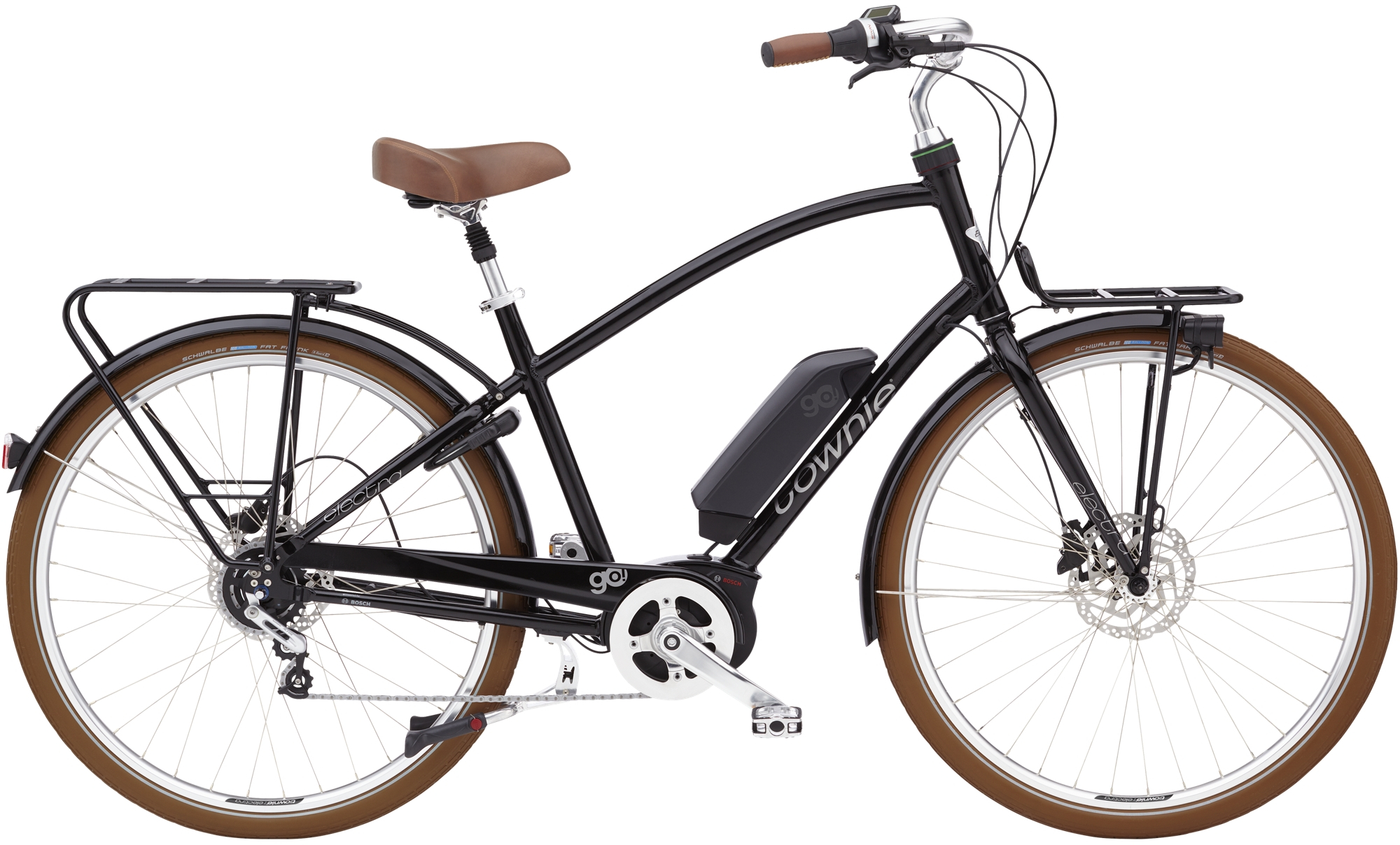 This ingenious e-bike comes equipped with high technology upgrades for a delightful, safe and sophisticated commuting experience. The Townie Commute Go! showcases swept back handlebars, ensuring a relaxing ride while the handy front and rear racks and pre-installed lights deliver extra functionality on two wheels.