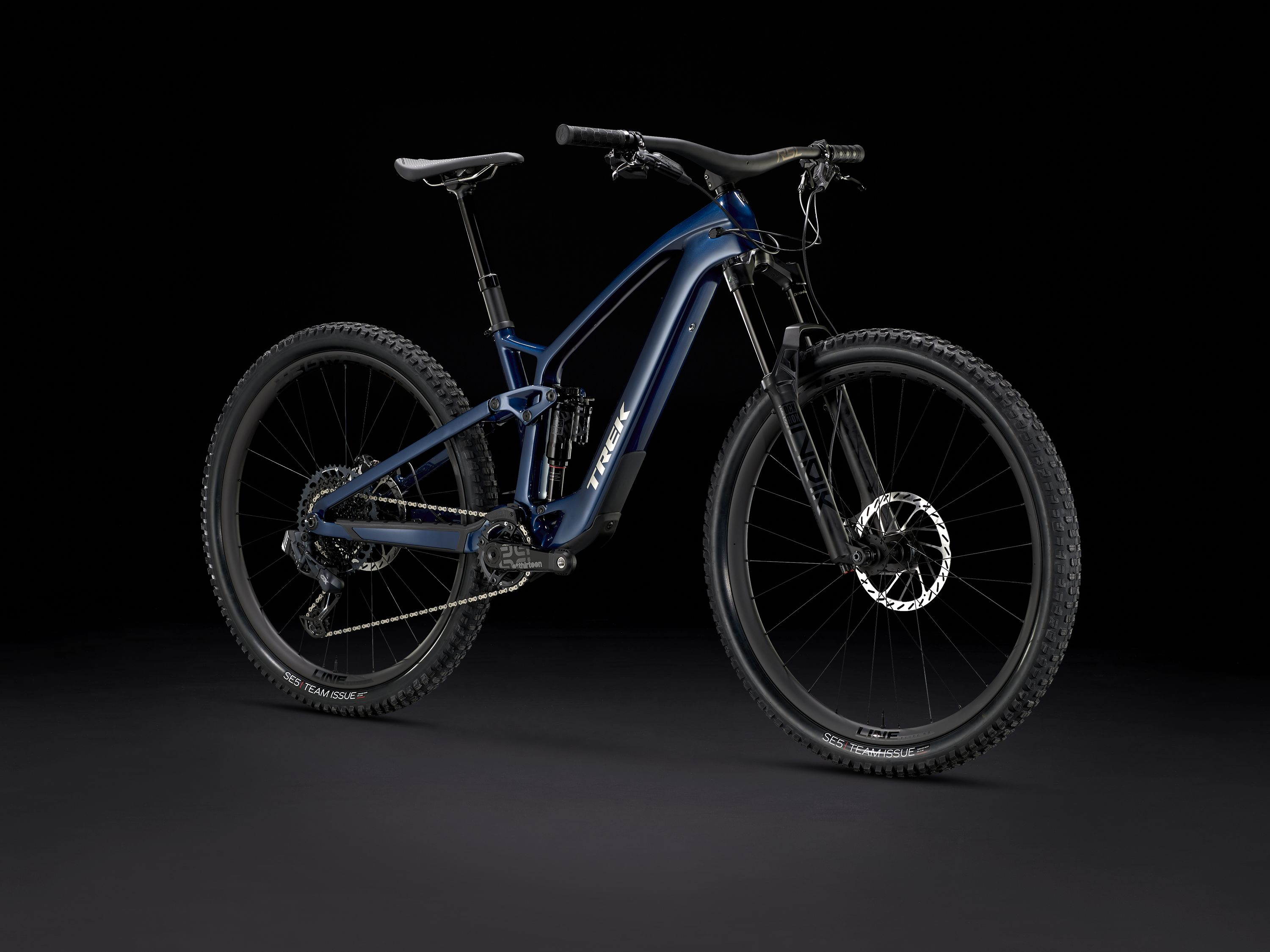 The Fuel EXe 9.8 is a refined trail bike with just the right amount of power for scorching climbs before turning around to rally though technical and flow trails alike. Its equipped with future-minded technology, like the space-approved TQ transmission and wireless SRAM GX AXS shifting that keeps your cockpit minimalist. Finally, carbon wheels and an upgraded RockShox suspension package keeps you floating on the trail even when the conditions get hairy.