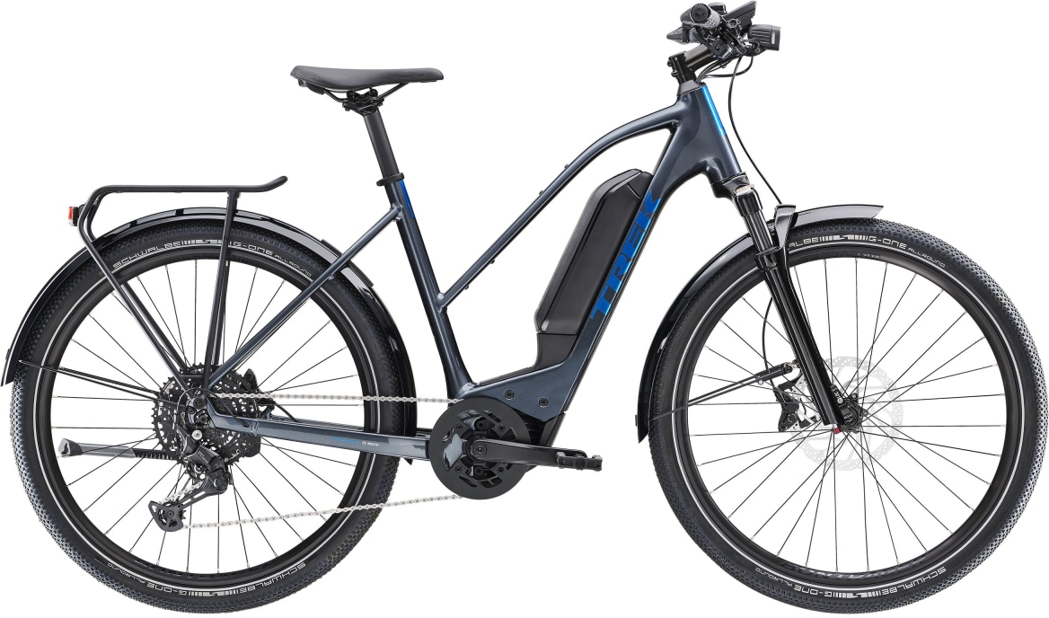 The bike features a sturdy hydroformed aluminium frame and a high-performance Bosch smart system. The system offers up to 20mph (25km/h in Europe) of support, coupled with a Kiox 300 display, LED remote and smartphone pairing options. The varying battery options (400, 545, 725 or 800 Wh) let you choose what suits your riding routine the best. A front suspension fork helps counteract bumps on the road, while Shimano CUES shifting withstands heavy loads. The clean look of internal cable routing, MIK-compatible rear rack and inbuilt lights add the finishing touches.