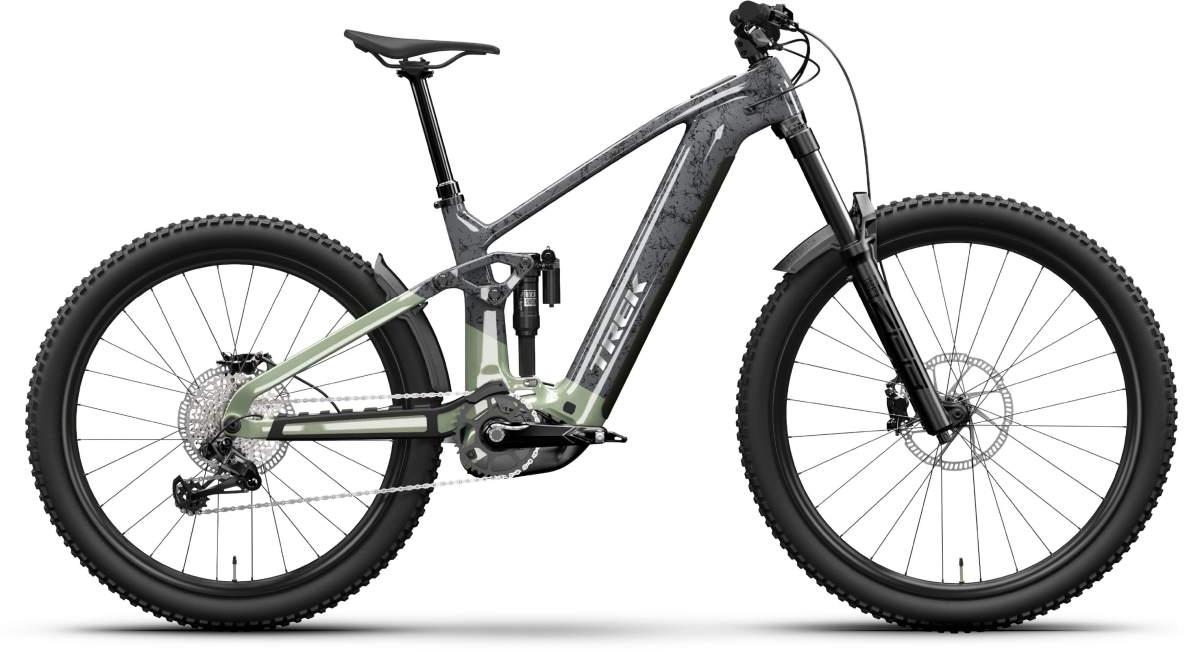 An OCLV Mountain Carbon frame with Bosch Performance CX system (85 Nm, 250 W) and a massive 800 Wh RIB 2.0 removable integrated battery. A 160 mm RockShox ZEB Ultimate fork with DebonAir spring and Charger 3 RC2 damper, and RockShox Super Deluxe Ultimate rear shock. Tubeless Ready Bontrager Line Comp 30 wheels, a 12-speed Shimano XT drivetrain, 4-piston Shimano XT hydraulic disc brakes and an internally-routed dropper post.