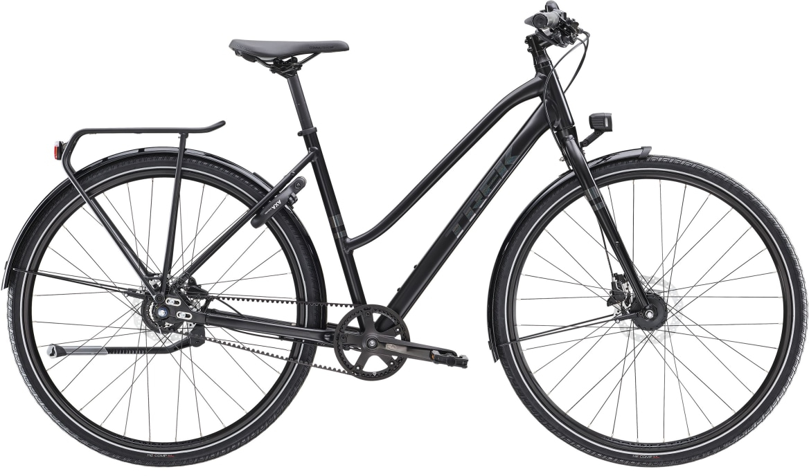 A lightweight Alpha Smooth Aluminium frame with internal cable routing, comfortable, upright geometry and a stagger design. A Gates CDX belt drive with a Shimano Alfine 8-speed internal hub and a Shimano dynamo front hub that powers your lights. Plus, powerful hydraulic disc brakes, mudguards, comfortable ergonomic grips, a MIK-compatible rear rack and wide, stable tyres with reflective sidewalls. A lightweight Alpha Smooth Aluminum frame with internal cable routing, comfortable, upright geometry, and a stagger design. A Gates CDX belt drive with a Shimano Alfine 8-speed internal hub, and a Shimano dynamo front hub that powers y