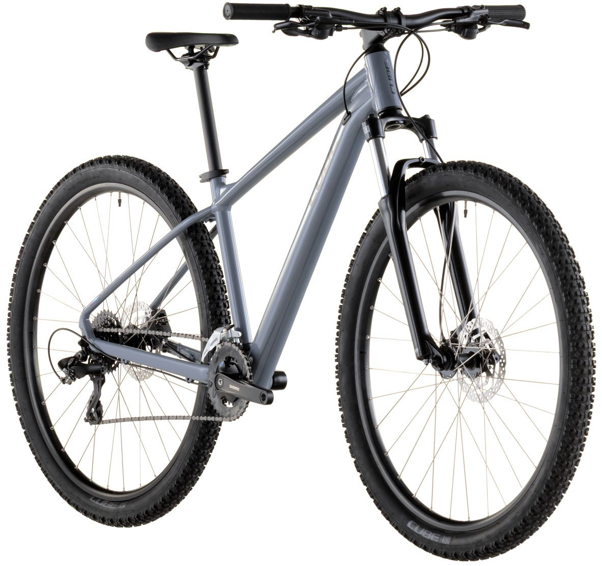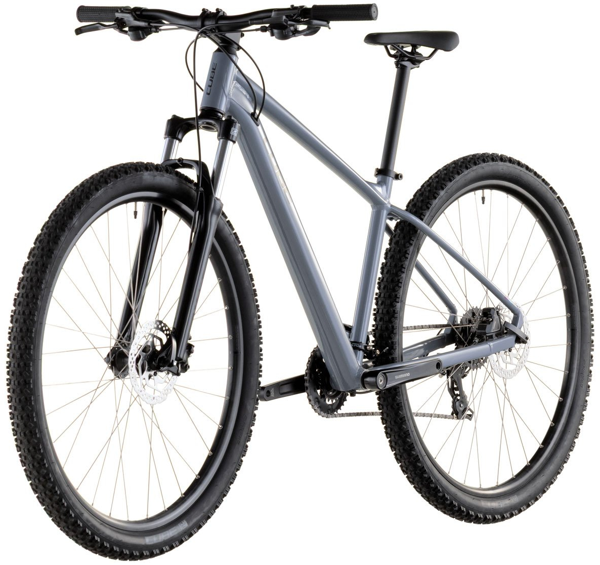 Your bike should be an extension of you, so that you can just enjoy the ride. That's why, with the Aim ONE, we fitted a 100mm suspension fork and grippy 2.25in tyres. Together, they help keep you comfortable and in control, no matter what surface you're riding on. Shimano's 2x8-speed gears give you the range you need at the push of a button, and powerful Shimano hydraulic disc brakes bring you safely to a stop no matter what the weather's doing. And Size Split, with its huge range of sizes, means every rider can find their perfect Aim.