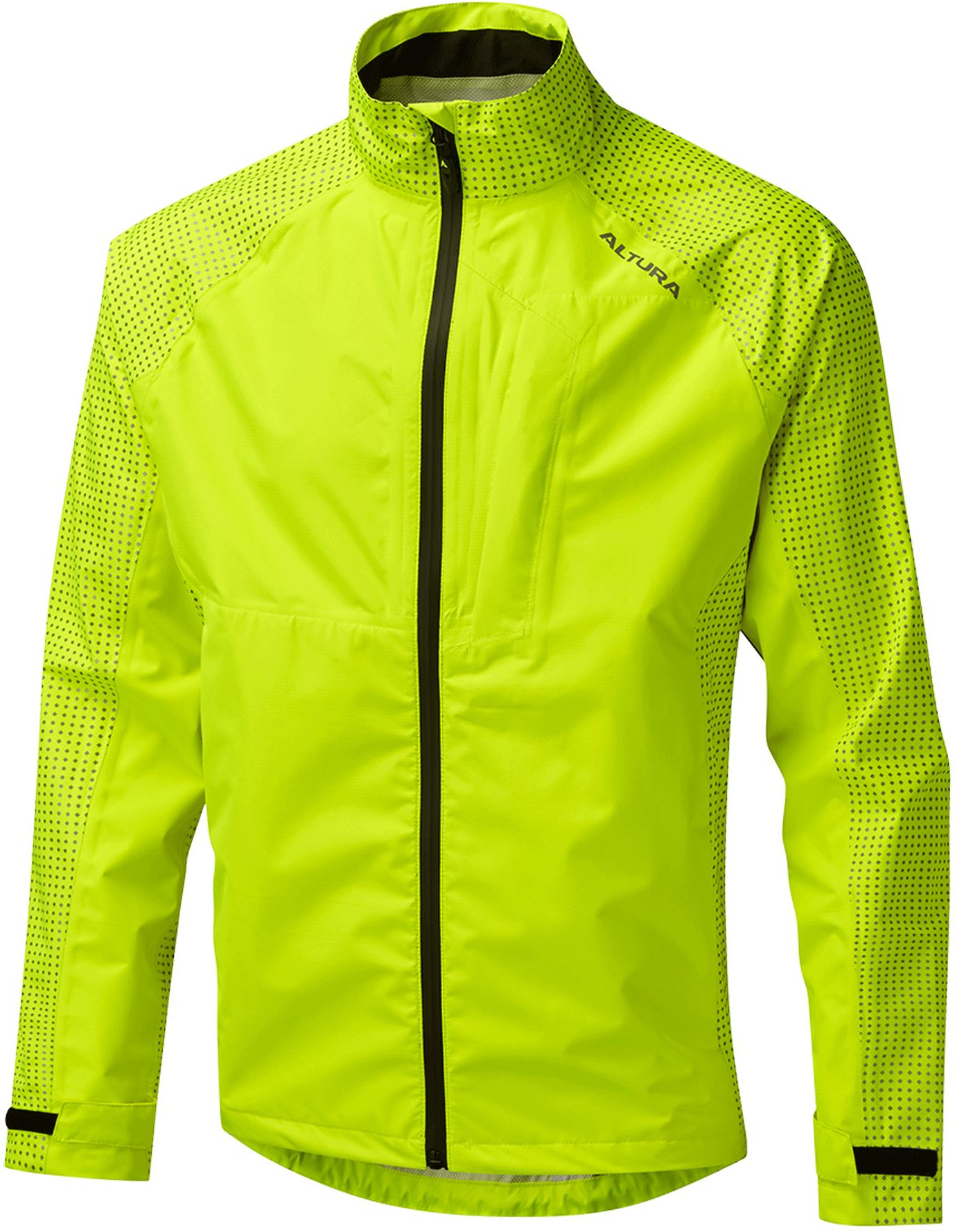 Altura: COMMUTE IN CONFIDENCE AND COMFORT WITH THIS TECHNICAL WATERPROOF JACKET The Altura Nightvision Storm Waterproof Cycling Jacket has an injection of our unique reflective print design that has been used successfully in our Nightvision commuter range. The “Silver Reflective” print will illuminate key areas of the body to increase visibility to others in low light conditions whilst maintaining breathability and comfort. Made with 10k / 10k waterproof and breathable fabric, taped seams and fleece lined collar, it will keep you dry and snug whilst a variety of storage pockets let you keep essentials close to hand on and off the bike.Although this product is waterproof, pockets and zips can never be 100% watertight due to construction requirements so we recommend securing valuables and electronic items in a watertight dry bag or internal pocket where possible. FEATURESFully waterproof including taped seams10k / 10k waterproof and breathabilitySilver reflective printUnderarm and back ventsTwo hand pockets, chest and back pocketsFleece lined collarRelaxed fit