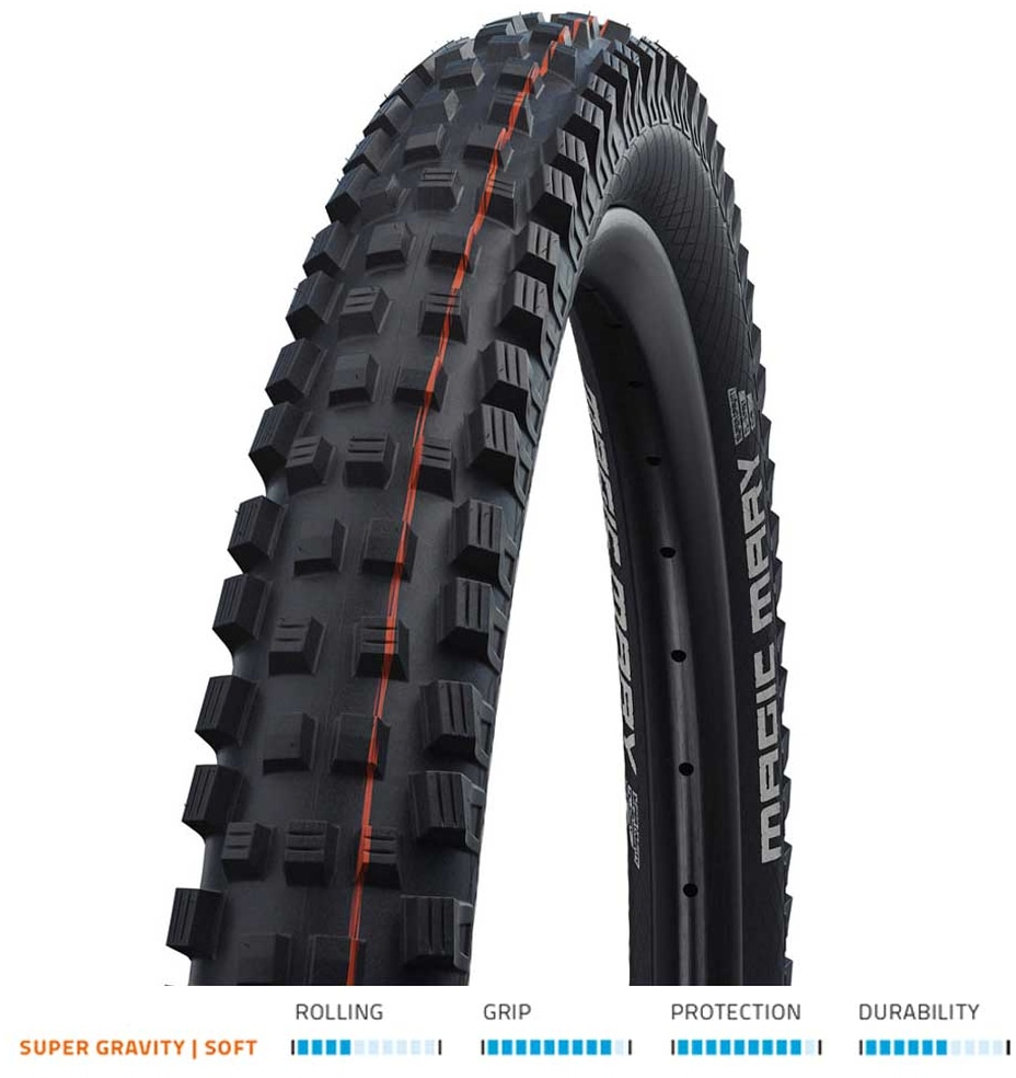 The favourite of Downhill and Enduro experts. The perfect choice for virtually any track. Intermediate tread: maximum braking traction and cornering grip even in extremely muddy terrain thanks to strong shoulder studs and the aggressive, open tread design.Addix Soft is the Addix compound for hardcore use in enduro and downhill. It's suitable for all-weather use due to significantly improved low-temperature properties when it comes to grip and damping. Extremely soft to cope with very difficult challenges. Addix Soft appears to stick to the ground, literally clawing its way into the subsoil.**Features:*** E-BIKE READY: For motor assist up to 25kph (folding tyres only)* TLE: Tubeless Easy Carcass contains a special monofilament fabric to prevent air-loss when used in combination with a sealant liquid.* SIDEWALLS: Snakeskin, a light and flexible carcass that makes the tyre highly resistant to scrubbing.* Some models additionally feature 2 layers of extremely robust APEX motorcycle grade reinforcing for additional puncture protection (see tyres marked APEX)* TPI: All 67 TPI* WEIGHT: 27.5x2.35 - 1100g / 29x2.35 - 1165g**ETRTO:*** SCM4233: 62-584* SCM4233A: 62-584* SCM4234: 62-622* SCM4234A: 62-622